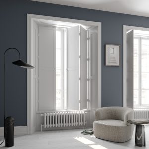 A flexible and popular style, these are single full height panels that cover the whole window. It’s a simple yet elegant style that works on any window but gives a real wow factor and dramatic finish to patio doors or tall windows. Quite often full height shutters will have a divider rail. As well as giving support to the panels, it also allows you to operate the louvres above and below it independently so you can adjust the light according to your needs and create different looks.